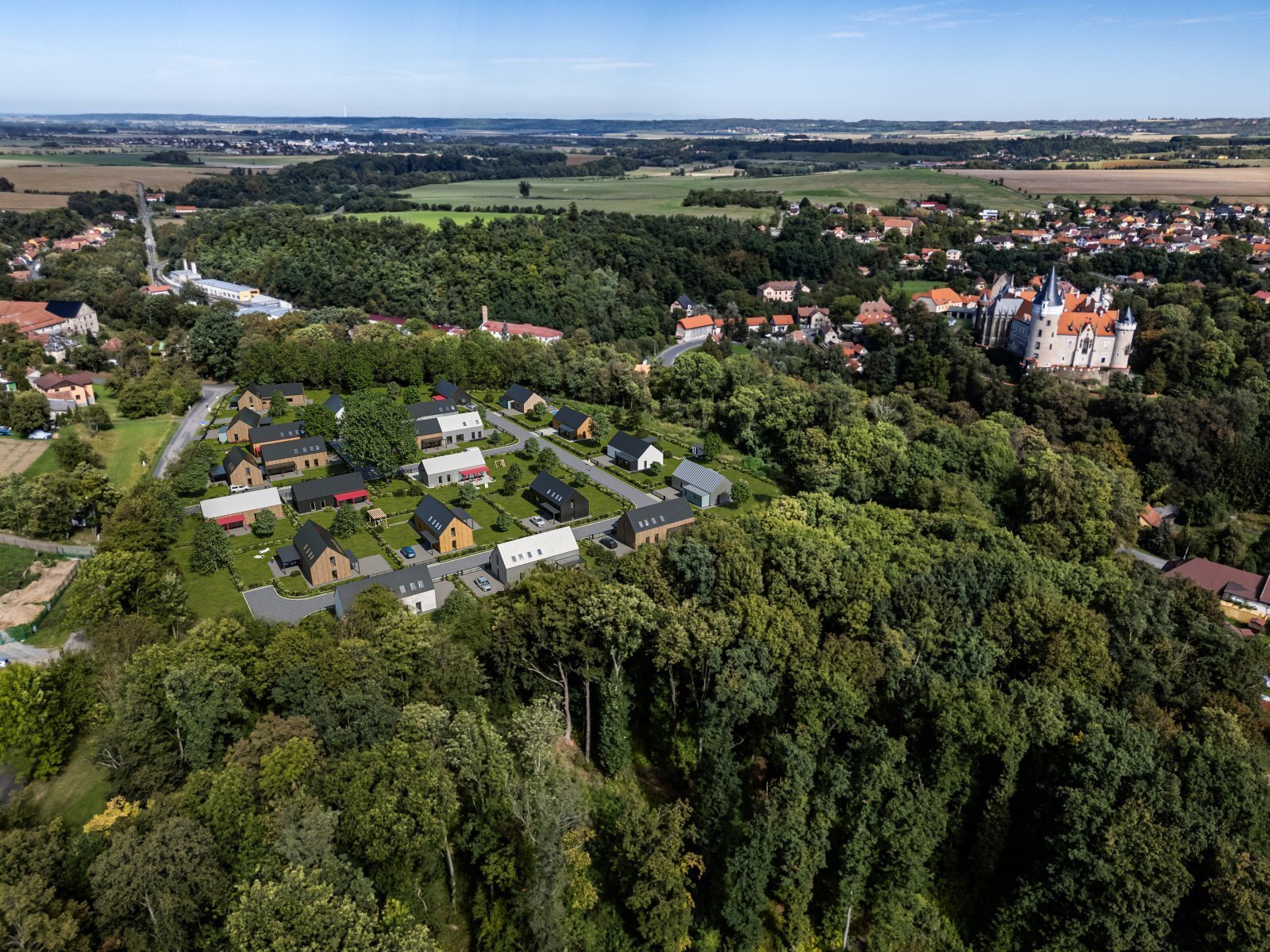 Okouzlující prostředí – Žleby jsou známé svým pohádkovým zámkem, rozsáhlými lesy a přírodními krásami, které vytvářejí ideální podmínky pro klidné rodinné bydlení.
